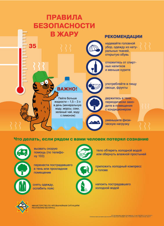 • носить головной убор и одежду светлых тонов, ограничить пребывание на солнце;