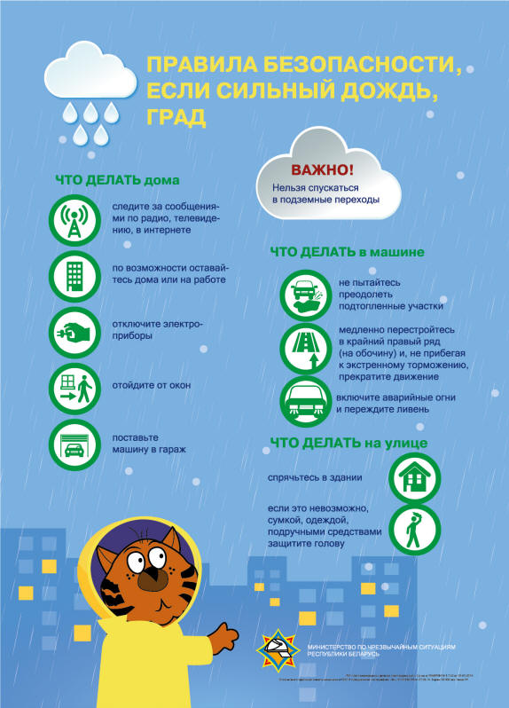 • Отслеживайте информацию в СМИ об участках дорог, наиболее подверженных затоплению в вашем населённом пункте. В сильный дождь корректируйте маршрут своего движения, чтобы избежать мест с большим скоплением воды.